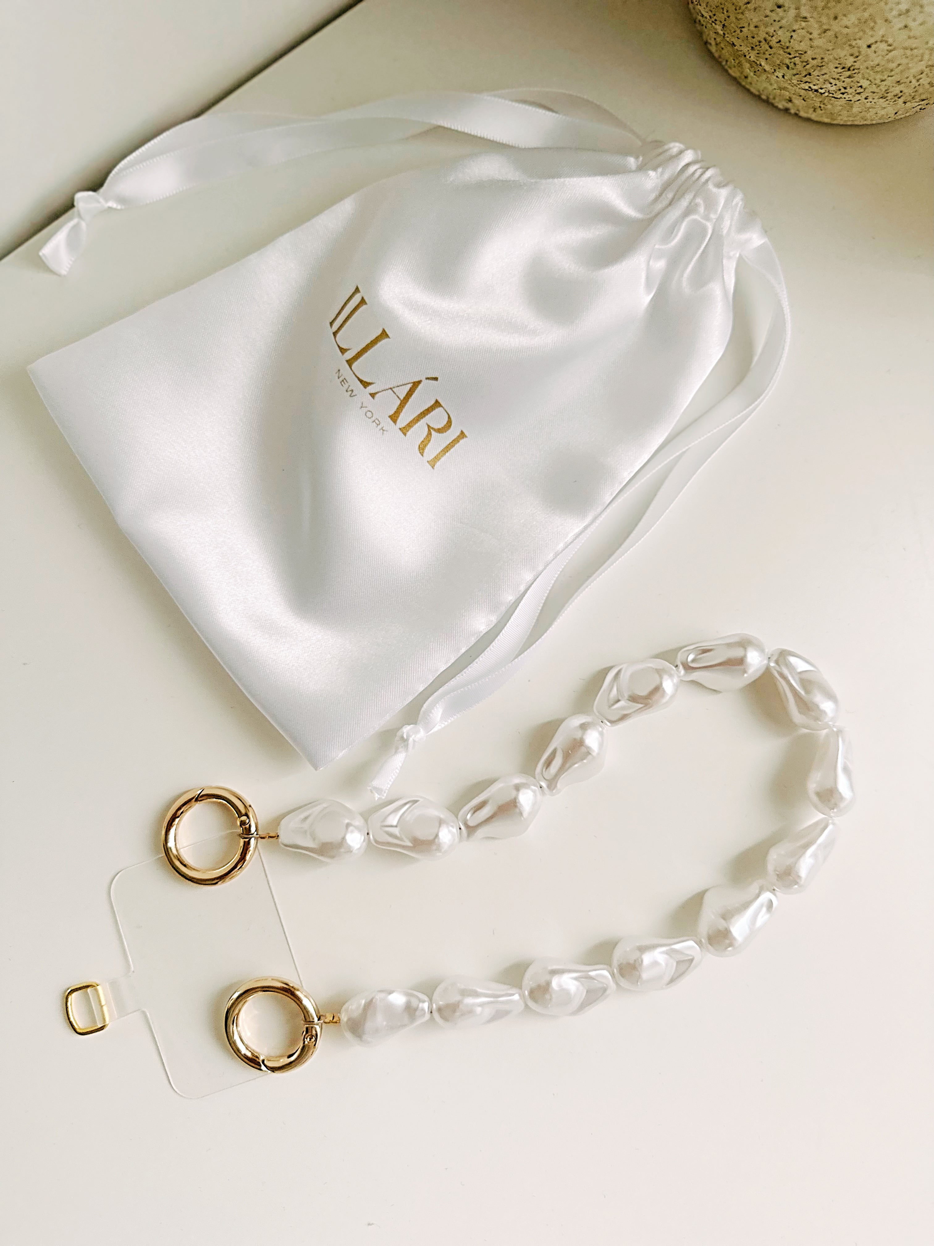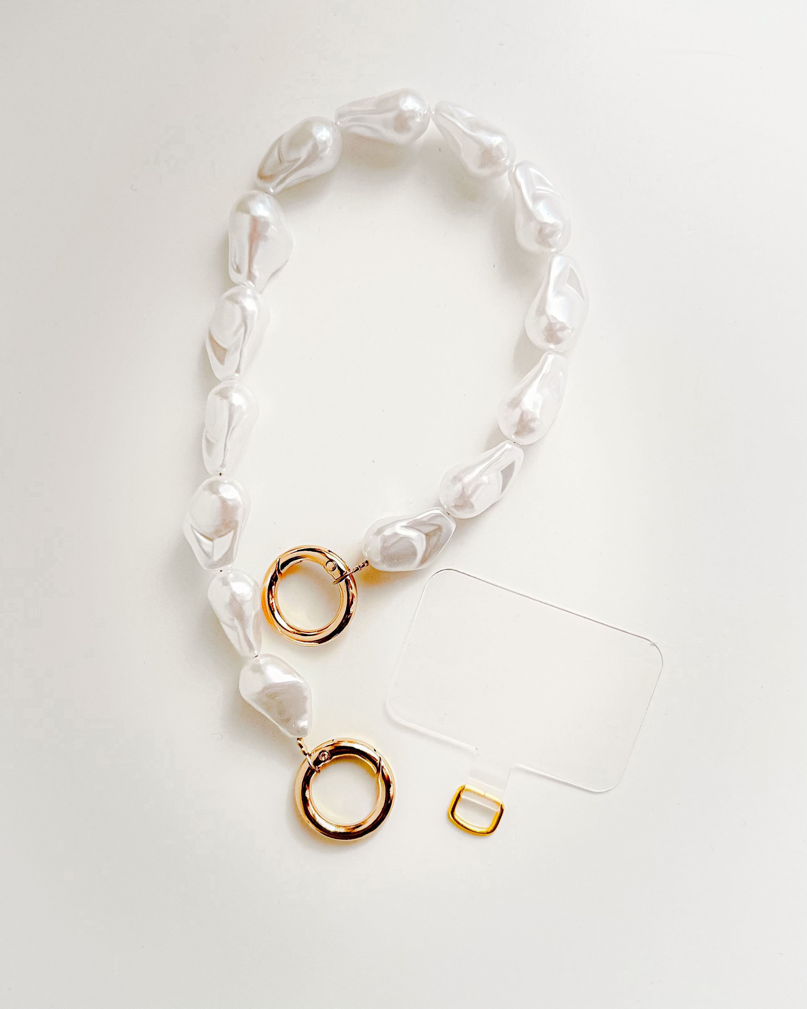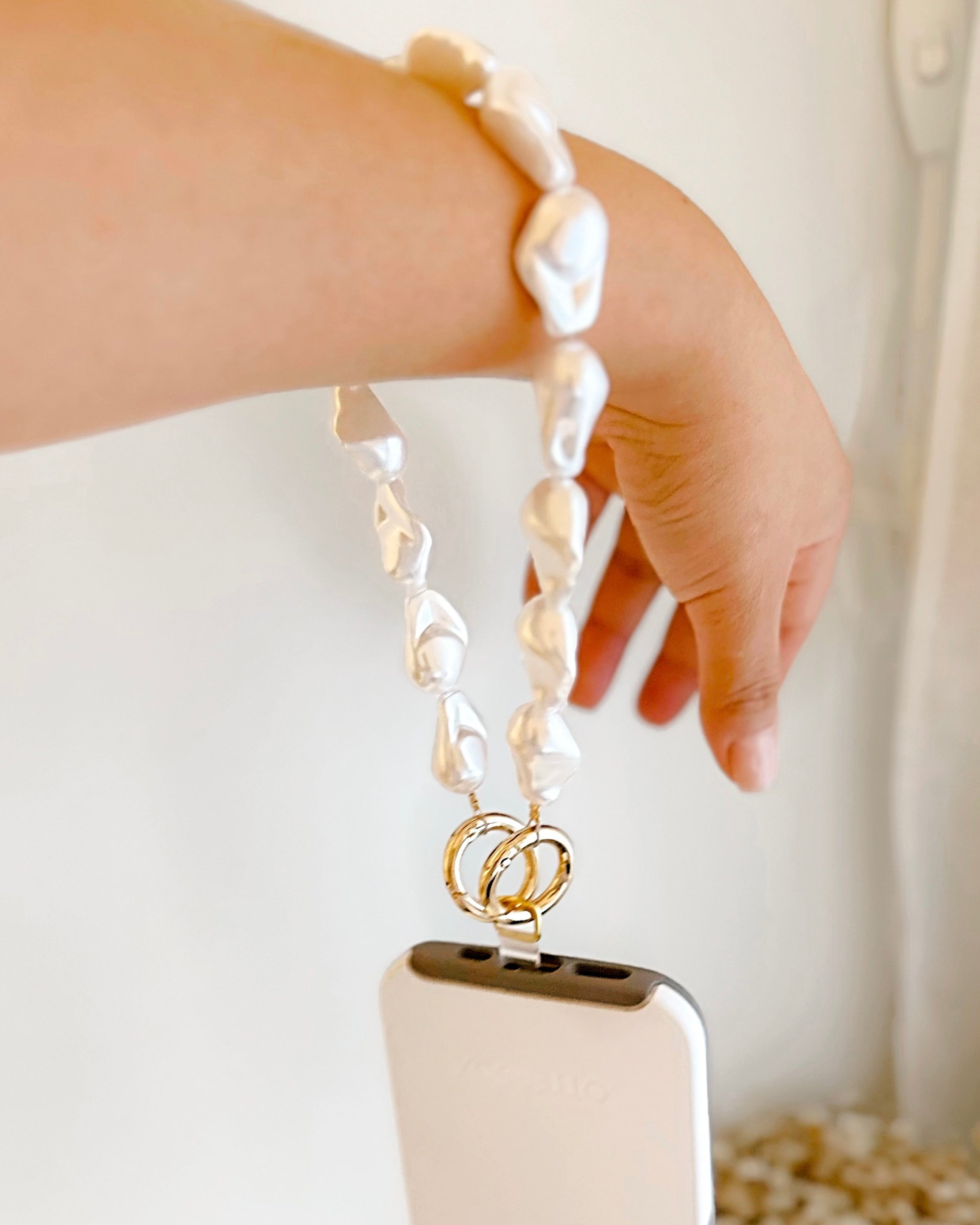 Cette dragonne pour téléphone Pearl offre un moyen tendance et pratique de garder votre téléphone à portée de main. Fabriqué à partir de grosses perles irrégulières, il se clipse facilement et en toute sécurité à votre appareil, offrant ainsi une commodité mains libres et un transport sans tracas pour toutes vos activités quotidiennes. Présentez-vous avec style et profitez des avantages d’un appareil bien tenu. Convient aux étuis avec œillets inférieurs. Ne convient pas aux coques de téléphone avec ouverture en bas. Téléphone non inclus.