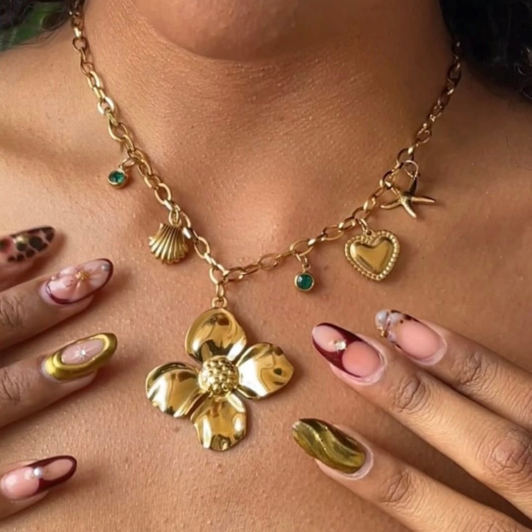 Introduce some whimsy to your jewelry collection with the Golden Flower Charm. This exquisite charm features a blooming floral design. Versatile as a pendant, bracelet charm, or earring, it adds a touch of elegance and nature-inspired symbolism. Add gemstones or enamel accents for a pop of color and sophistication. Combine with our build your own necklace collection here or our multi charm necklace here