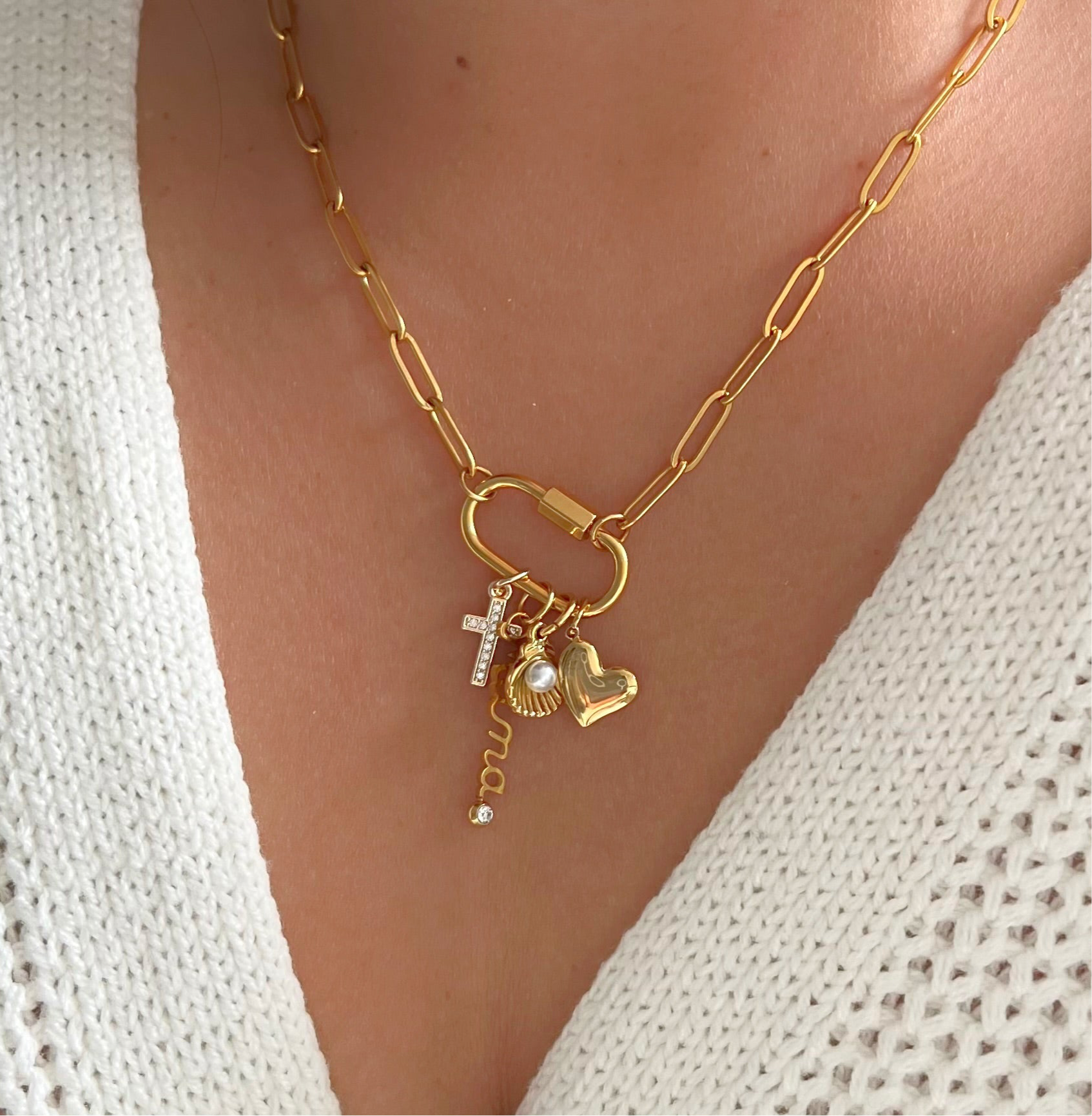 Bring sophisticated charm to your outfit with the pearl shell charm. Perfect for elegant evening outings, this lovely pendant adds class and poise to any necklace. Crafted from premium materials, this charm is sure to make any look date night ready. These charms are compatible with our build your own necklace collection click here