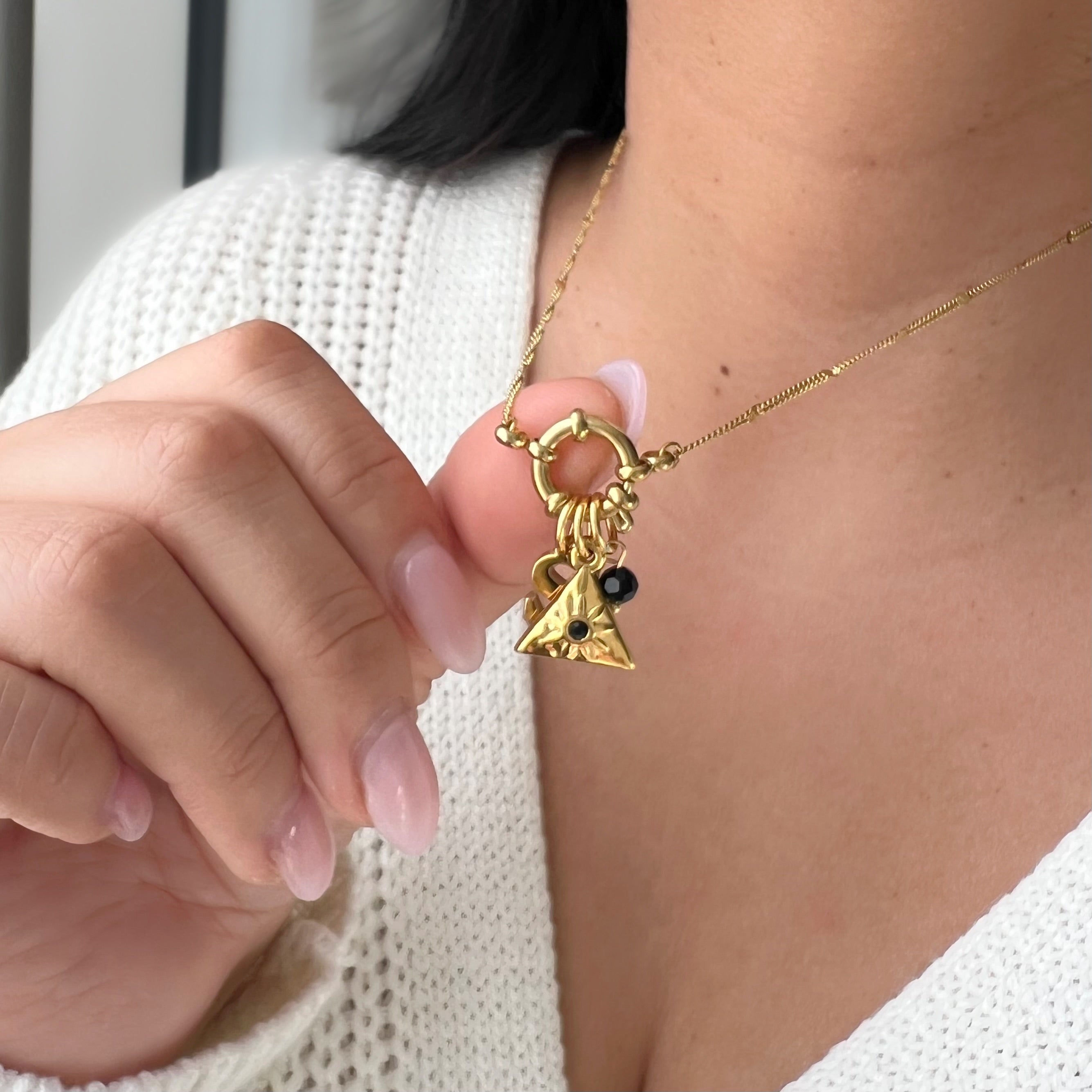 Pyramid Charm features a black center zircon stone. All charms are compatible with our Build Your Own Jewelry collections and Multi Charm Necklace. Click here to see collection